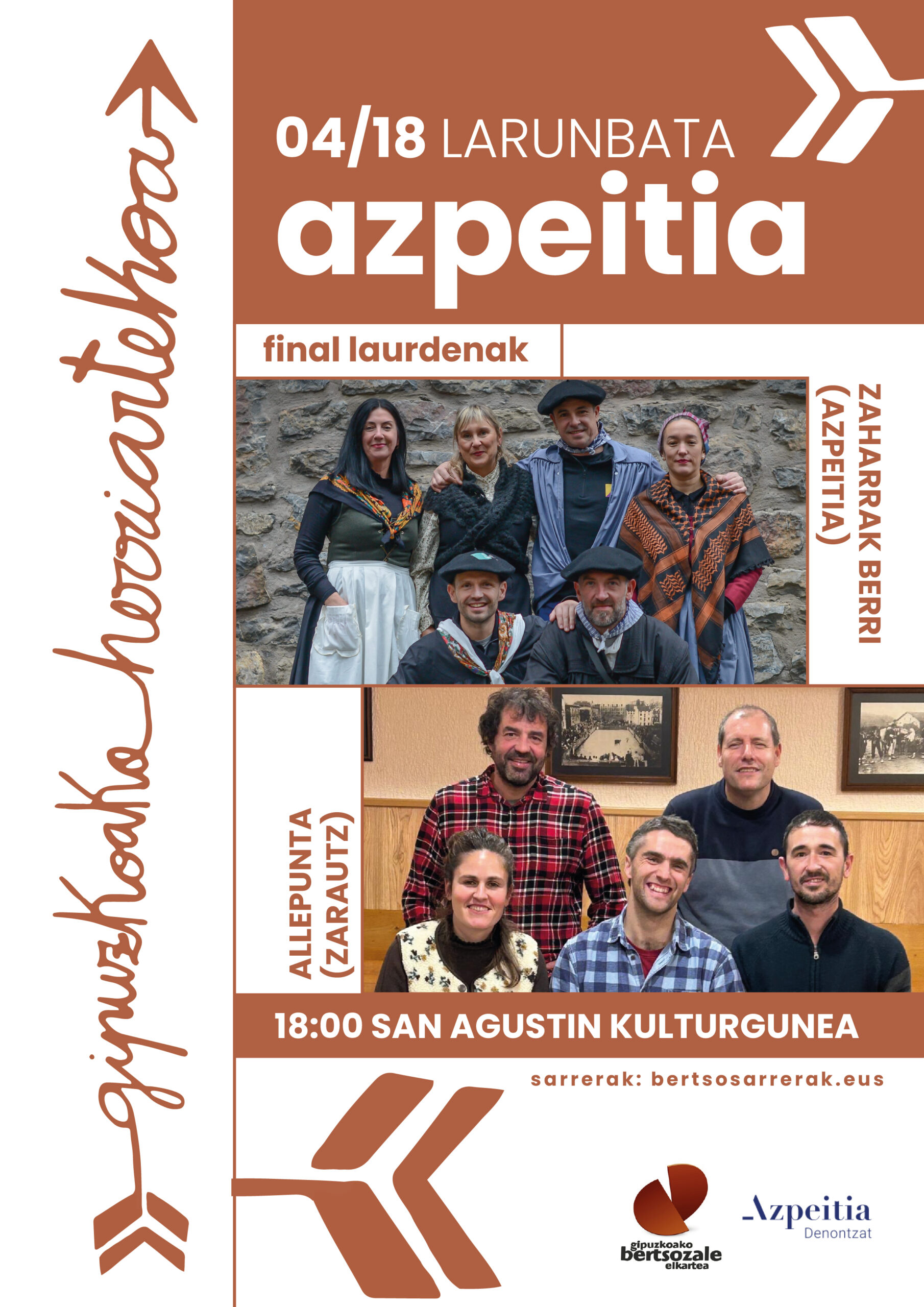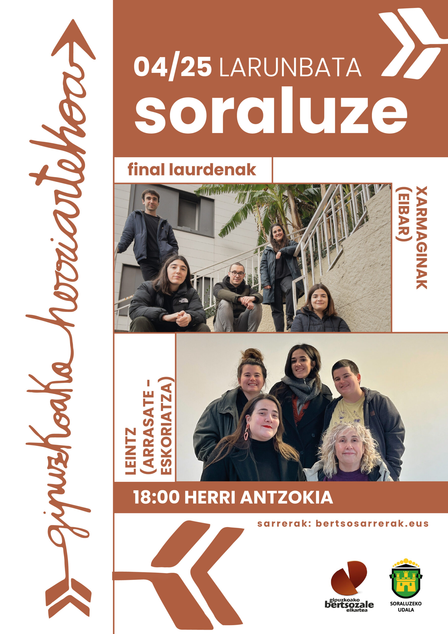 Larunbatean apirilaren 18an, berriz, Zaharrak Berri eta Allepuntak kantatuko dute Azpeitian. Bigarren asteburuko saioak hilaren 24an eta 25ean izango dira Hernani eta Soraluzen, hurrenez hurren. Lehenengoan Hernani eta Txingudi A arituko dira, eta bigarrenean Leintz eta Xarmaginak.