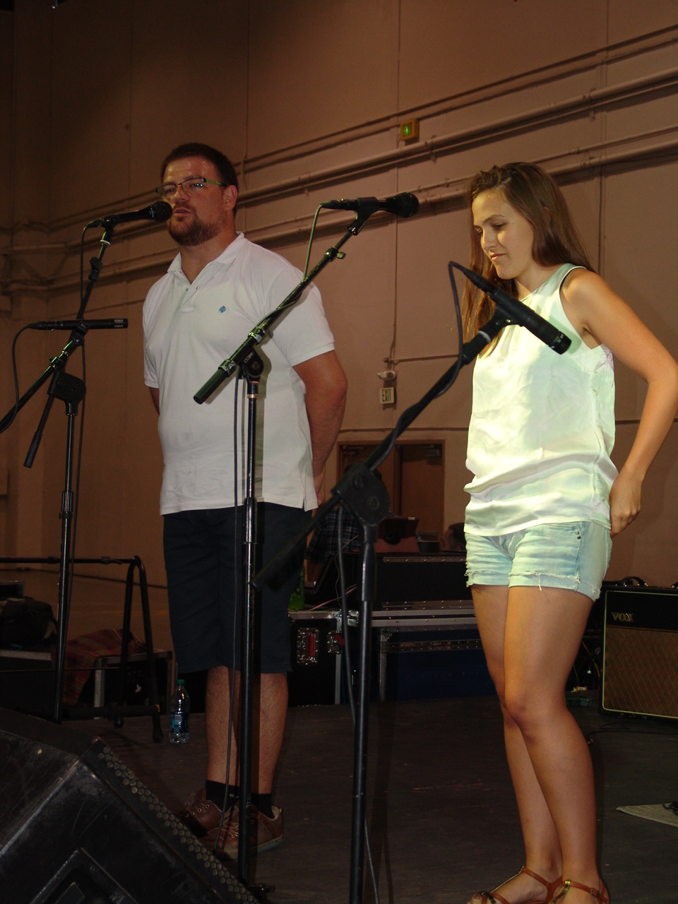 – Gazteak! Hurrengo ekitaldia uste baino lehenago amaitu beharko dugu, eta pentsatu dugu, herri-kirolariek denbora gehiago izan dezaten, zuen saioa egitea guk pista prestatzen dugun bitartean…