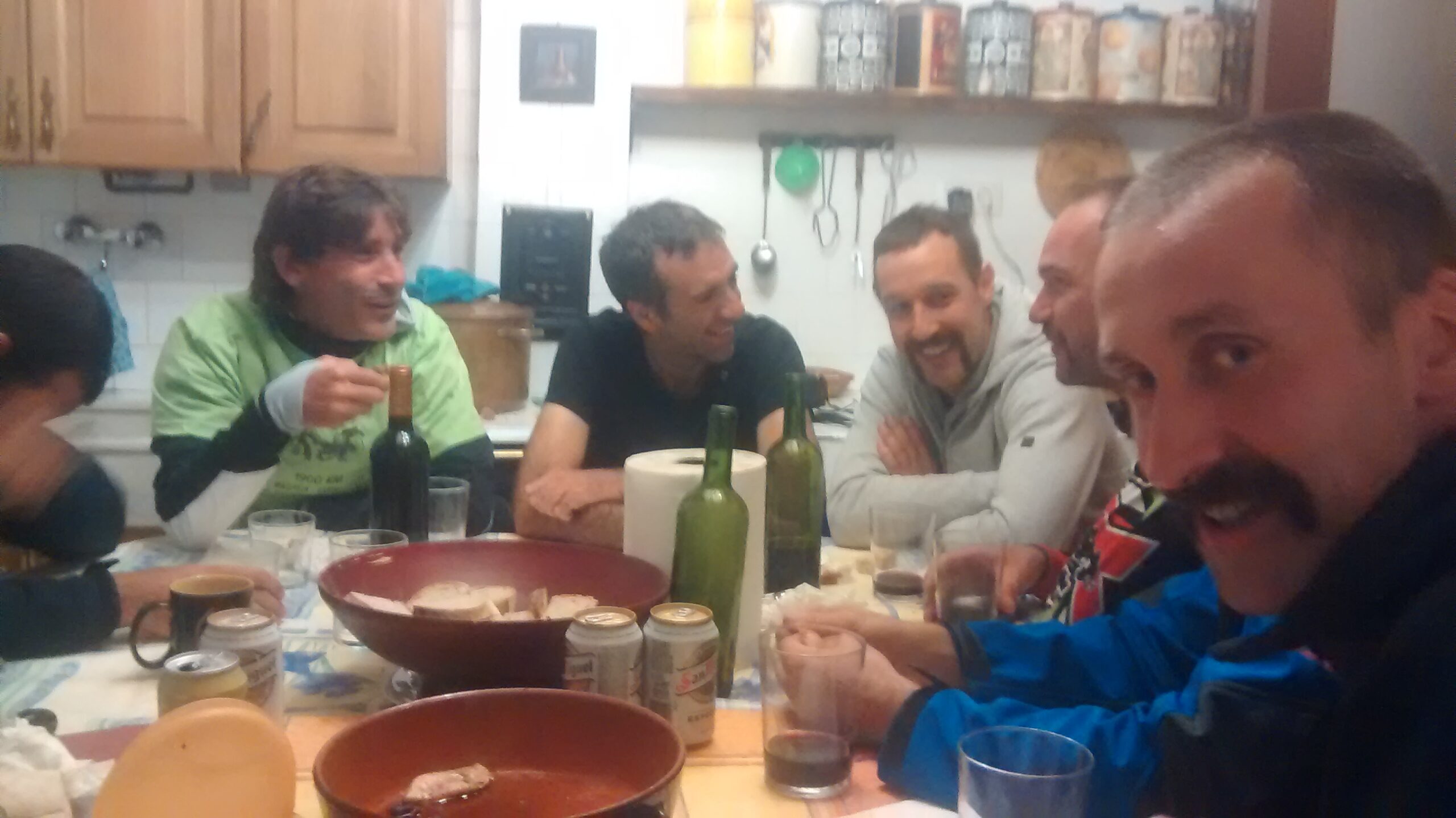 Afaria prestatu, kontu edarrak esan eta batzuk lotara, eta beste batzuk, neu tartean, sukaldean orujoa edanez, mundua konpontzera.