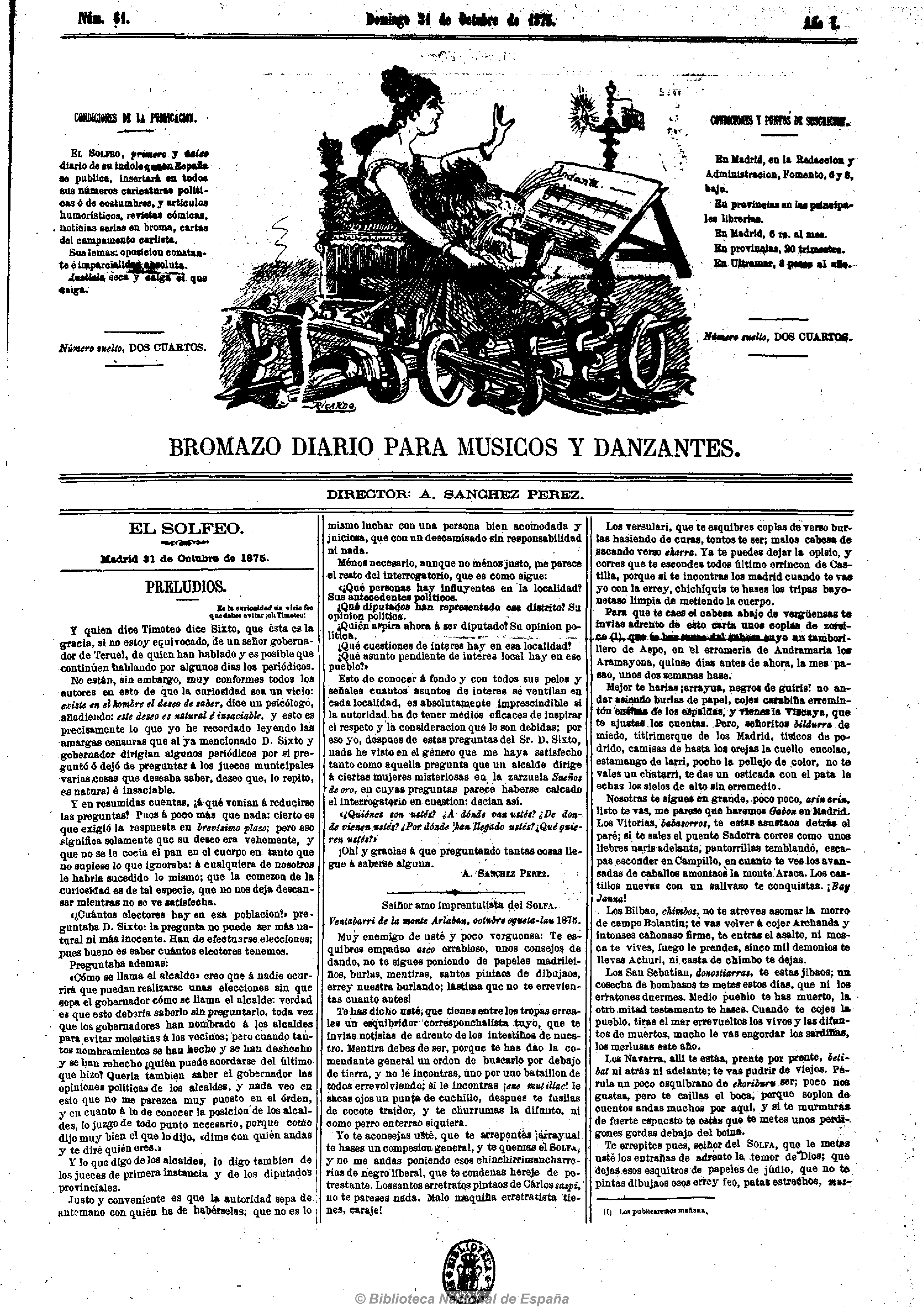 (El Solfeo, bromazo diario para músicos y danzantes, 1875eko urriaren 31n)